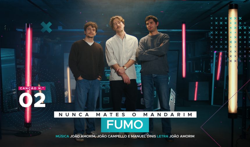 “Fumo” – Nunca Mates o Mandarim (Lyric Video) Canções 2026 Canções “Fumo” faz parte do alinhamento da 1.ª semifinal do Festival da Canção 2026. Ficha Técnica AutorNunca Mates o Mandarim CançãoFumo IntérpreteNunca Mates o Mandarim Música João Amorim, João Campello e Manuel Dinis LetraJoão Amorim Autor Nunca Mates o Mandarim Nunca Mates o Mandarim são João Amorim (voz), João Campello (bateria) e Manuel Dinis (guitarra). Em 2023, lançam o seu EP de estreia, “Parou P’ra Ver” (2023), que conferiu algum reconhecimento ao trio portuense, seguido do EP “Nunca Mates o Mandarim Cantam os Clássicos” (2024), uma coleção que remexe na purpurina do bailarico português. Com […] videos Nunca Mates o Mandarim – “Fumo” | 1ª Semifinal “Fumo”, interpretada por Nunca Mates o Mandarim, é a 2ª canção a subir ao palco da 1ª semifinal do Festival da Canção 2026. Intérprete: Nunca Mates o Mandarim Música: João Amorim, João Campello e Manuel Dinis Letra: João Amorim